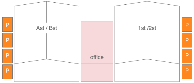 各棟、4台駐車スペースがあります。スタジオに横付けなさって下さい。